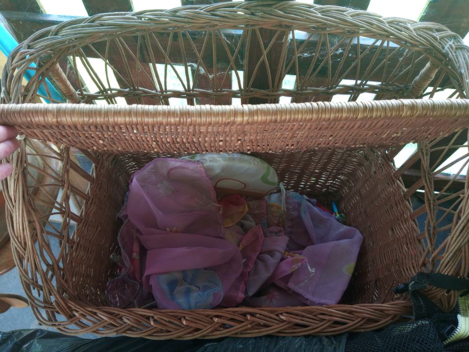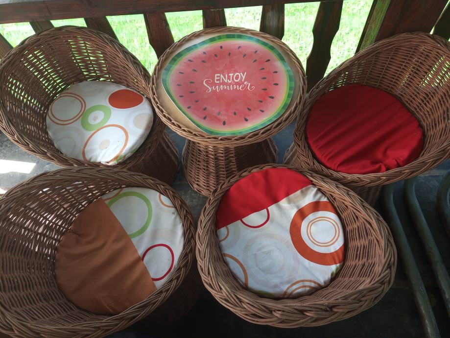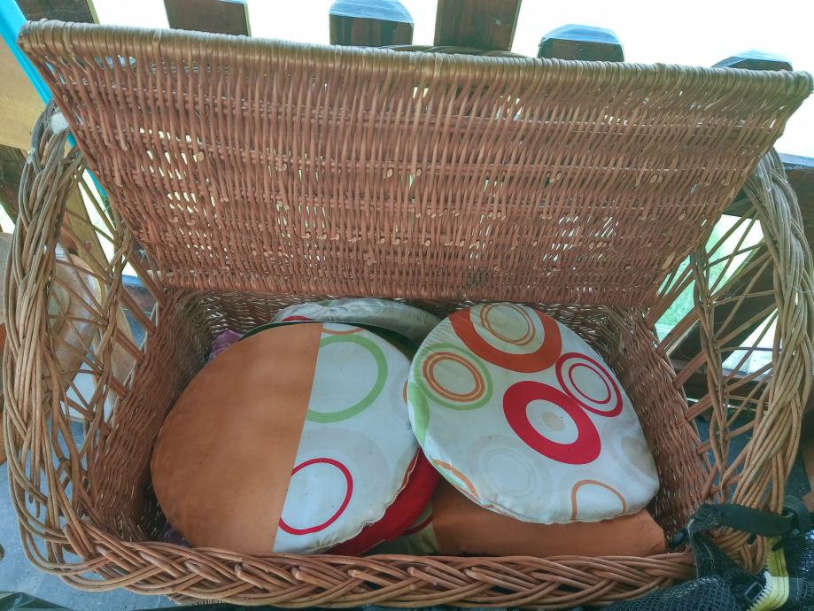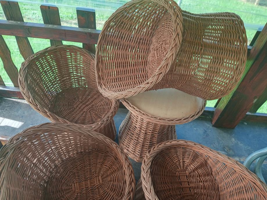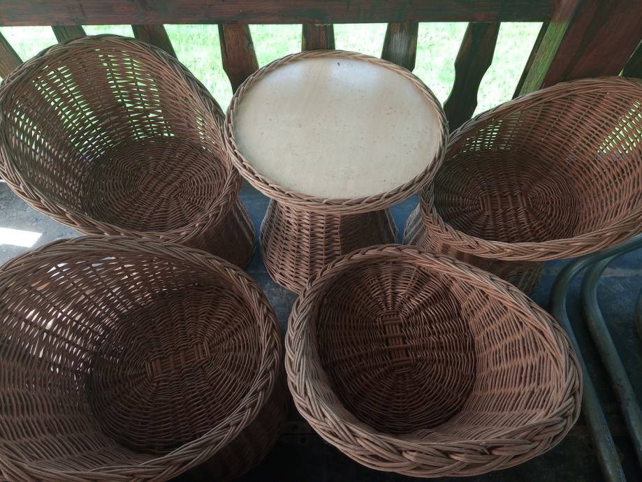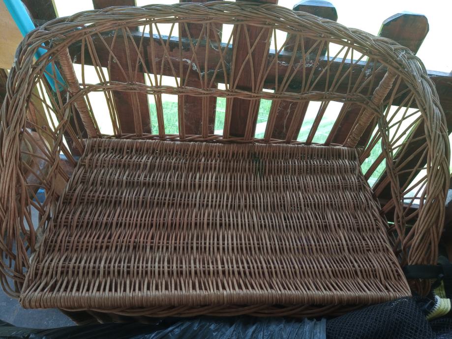 Rabljena dječja pletena garnitura sa dvosjedom koji ima spremnik za ručno izrađene jastučiće po mjeri,četiri fotelje i stolićem,odlična za vrt ili terasu