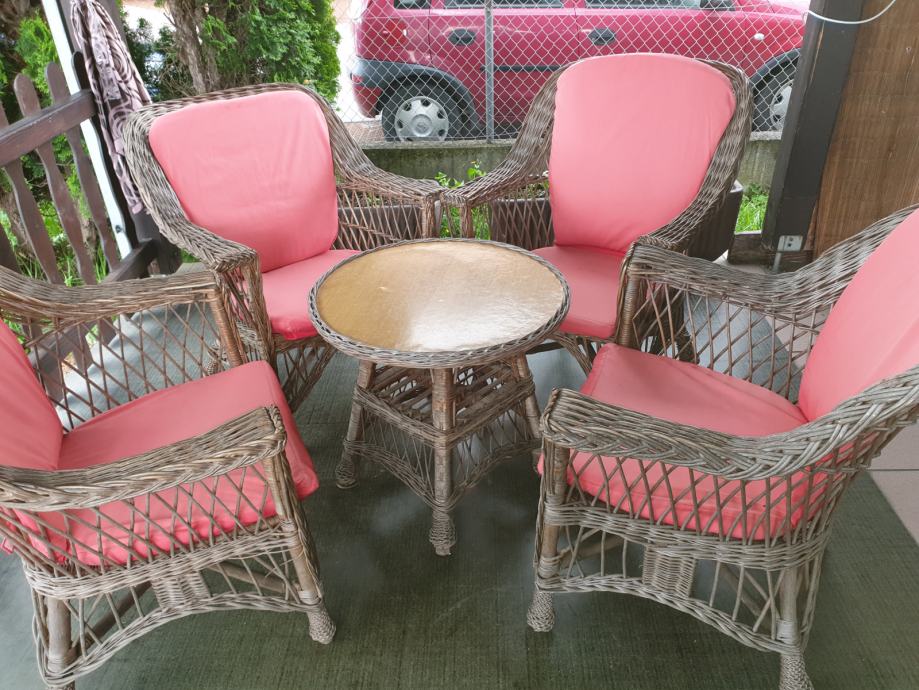 Prodaju se 4 velike pletene fotelje i stol. Izrazito udobne. S pripadajućim jastucima.