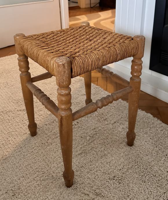 Drveni stolček s pletenim sjedištem visine 44 cm