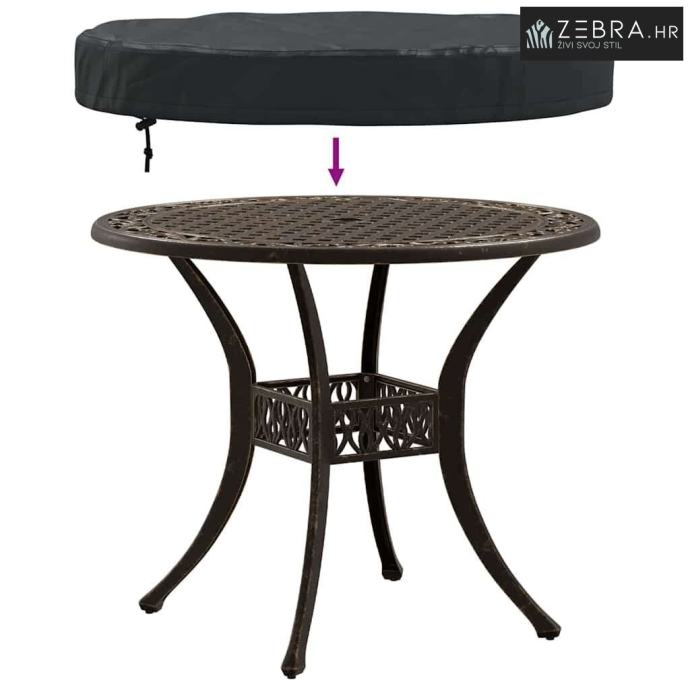 Ovaj pokrivač za okrugli vanjski stol donosi stil i praktičnost. Ima lijep, moderan izgled s minimalističkim dizajnom. Napravljen za vanjsku upotrebu, štiti tvoj namještaj od sunčeve svjetlosti i kiše. Savršen je za druženja i posebne trenutke, održava tvoj stol u vrhunskom izgledu tijekom cijele godine.