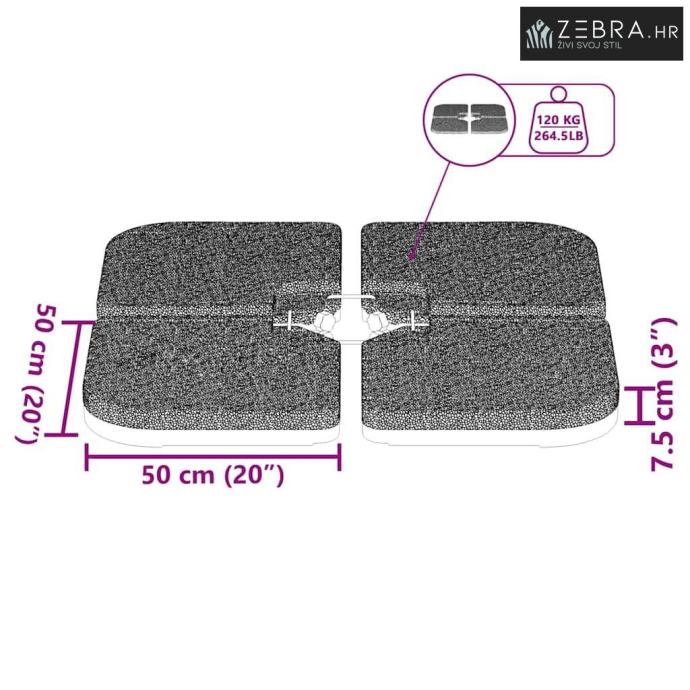 Veličina svakog dijela: 50 x 50 x 7,5 cm (D x Š x V)