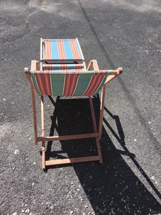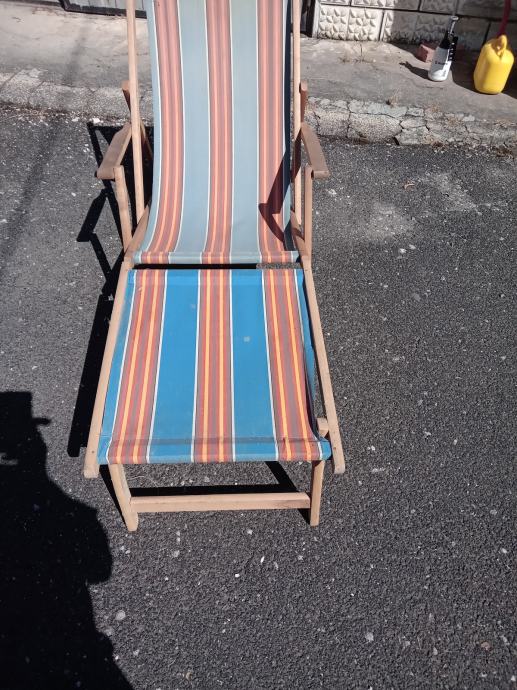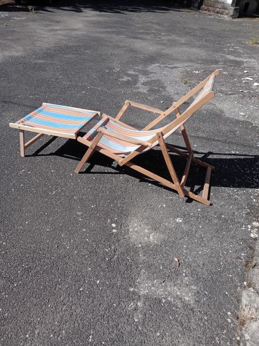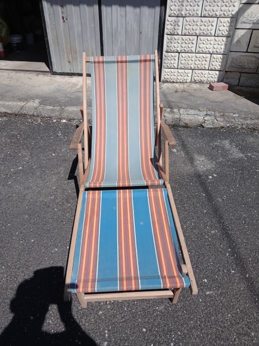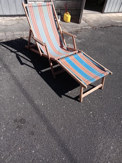 Ligestul ili ležaljke za vrt i plažu. Ležaljka je od kvalitetnog drva i platna.Stabilna i čvrsta malo korištena. Može se regulirati na četiri pozicije od sljedeće do ležećeg položaja. Ležaljka ima produžetak za noge .Koji nije nikada korišten.