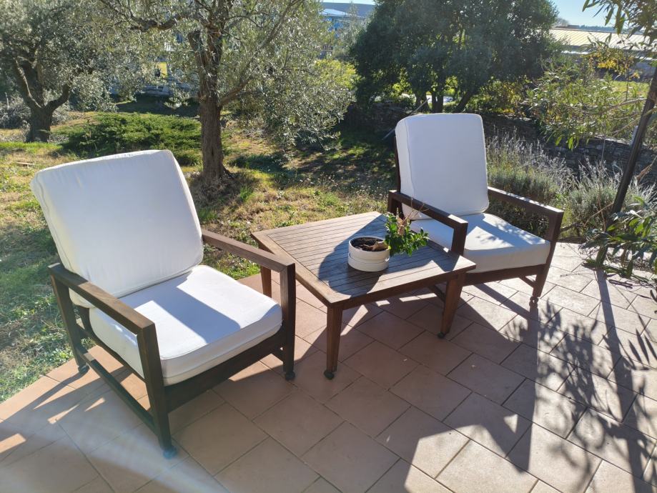 Prodajem u odličnom stanju, stol , 91x91x49 cm i dvije vrtne fotelje 93x76x35 cm. Tikovina. Jastuci za fotelje. Kotačići ispod stola i fotelja . Korišteno 5 sezona ispod natkrivene terase.
