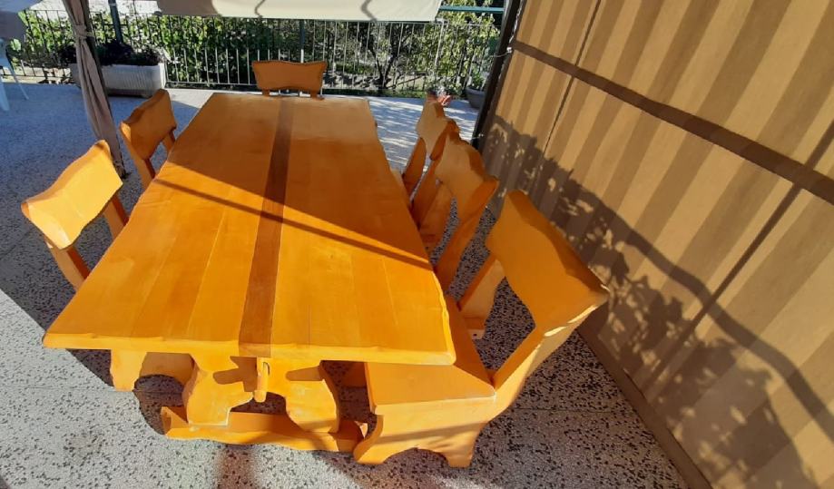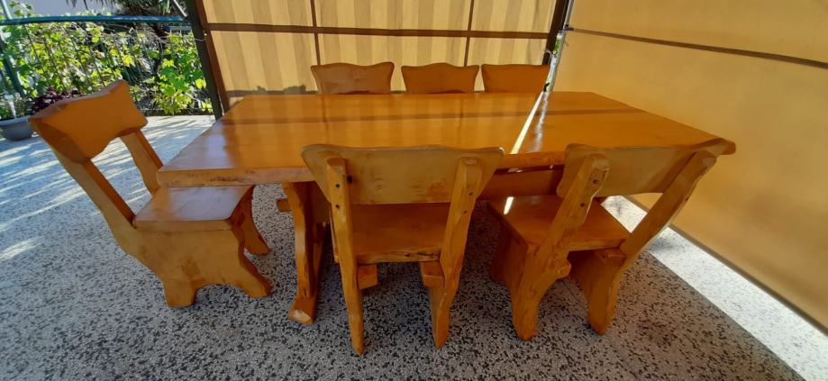 Prodajem vrtnu garnituru, stol 190x90 sa 6 stolica, masivno drvo, ručno rađena za 900 €