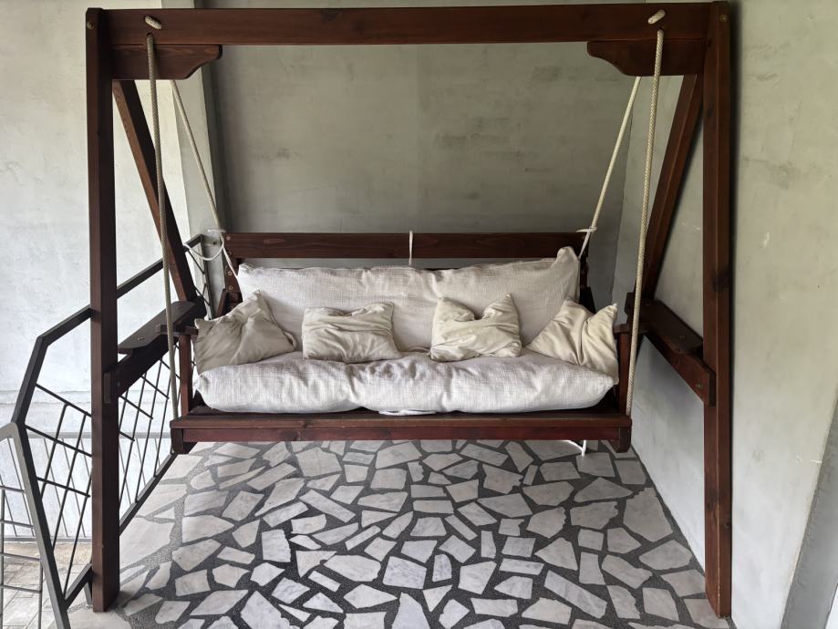 Prodajem ranljenu drvenu ljuljačku za terasu.