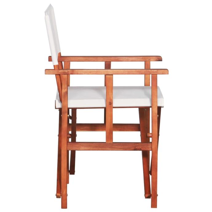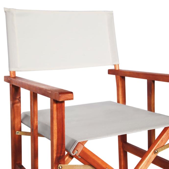Naša redateljska stolica napravljena je od masivnog bagremovog drva, tropskog tvrdog drva koje je otporno na vremenske utjecaje i vrlo izdržljivo. Sjedalo i naslon od visokokvalitetne tkanine pojačavaju udobnost sjedenja na stolici. Naša vrtna stolica može se sklopiti kad se ne upotrebljava radi jednostavne pohrane i transporta.