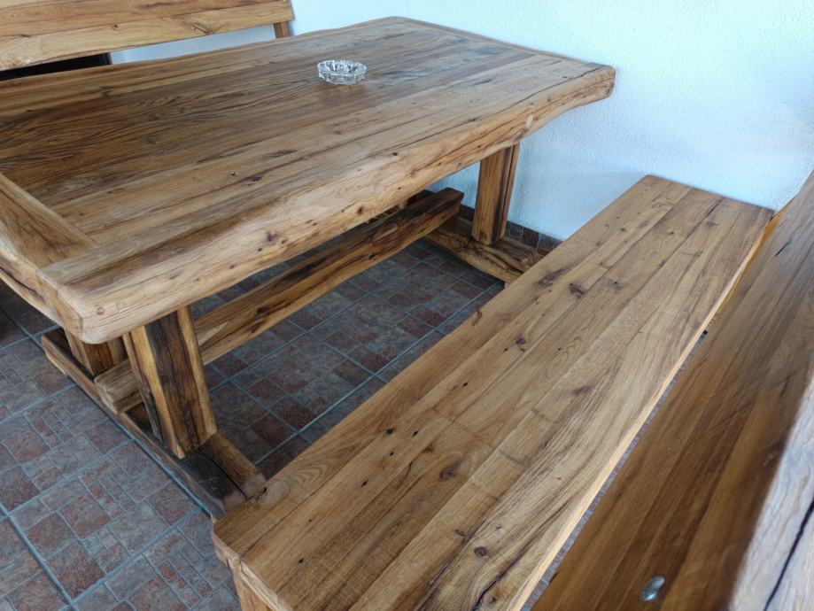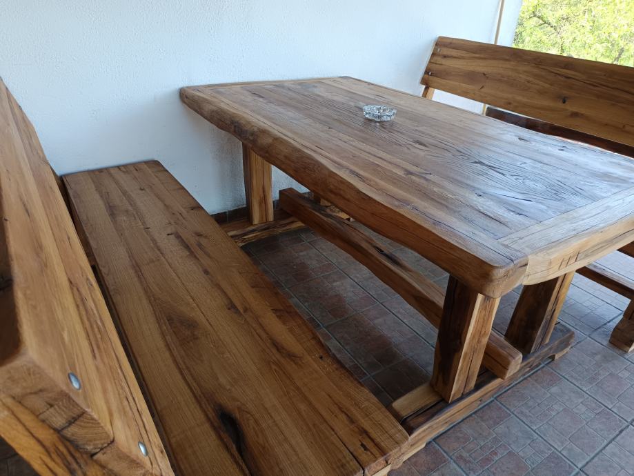 Prodajem novi rustikalni vrtni set izrađen od stare hrastove grede. Set se sastoji od masivnog stola i klupa, sve ručne izrade s karakterističnom teksturom i toplinom starog hrasta koji daje poseban rustikalni karakter svakom komadu.