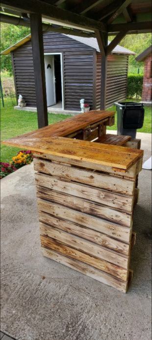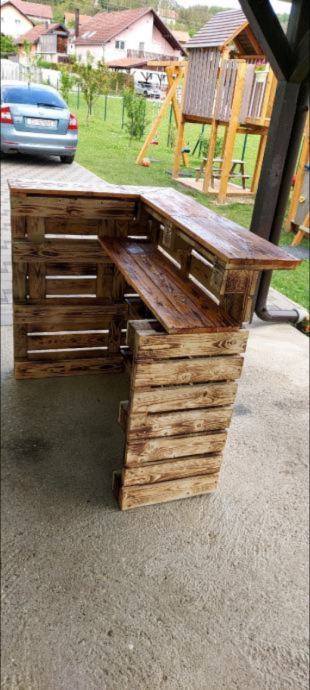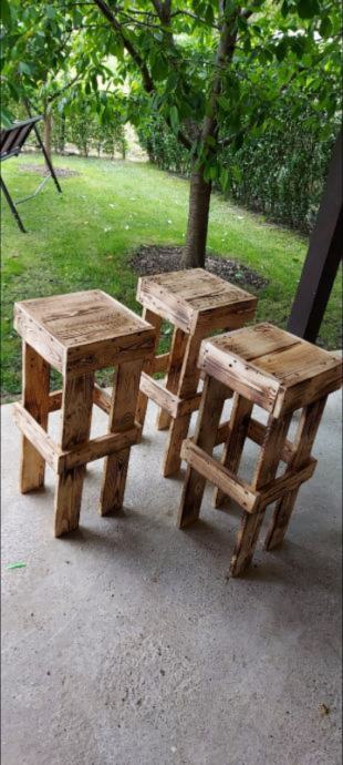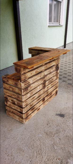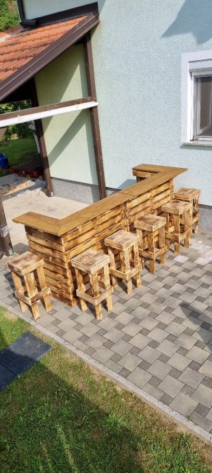 Prodajem šank od paleta(dimenzije 140x95) i 3 stolice. Cijena 250 eura. Moguća izrada i u drugim dimenzijama.