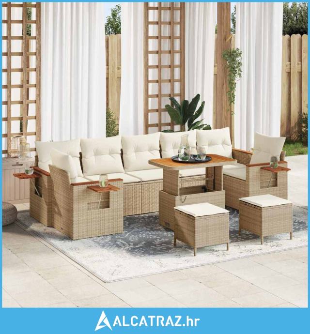 Set od 10 dijelova vrtnog kauča s jastucima bež poli ratan acacia - NO