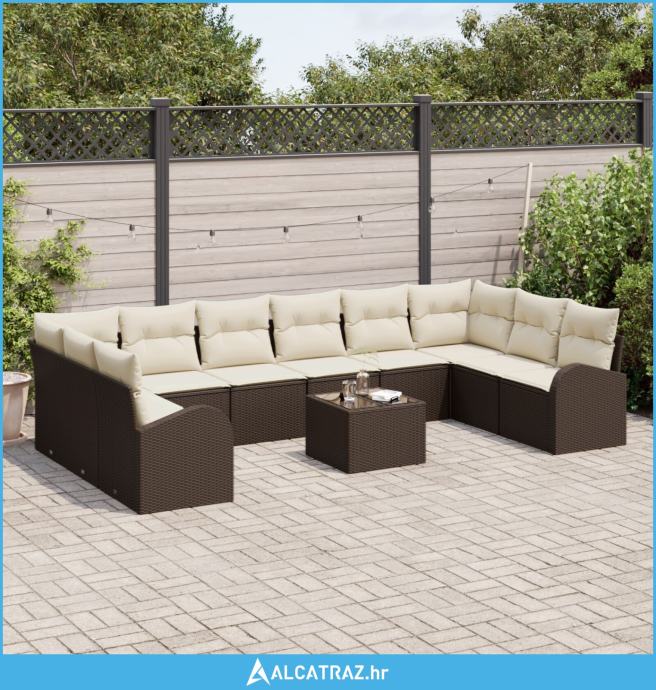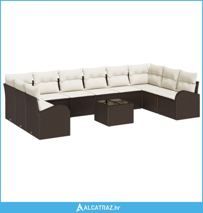 set od 10 dijelova vrtnog namještaja s krem jastučićima smeđa poli rat