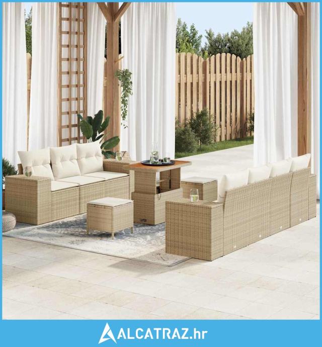 set od 10 komada vrtnih kauča s jastučićima Bež Poli ratan Acacia - NO