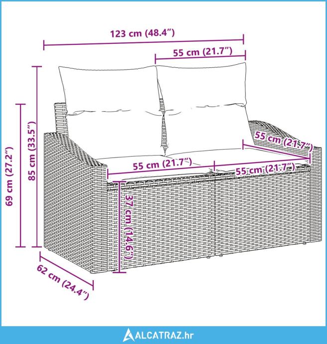 - Otporan na vremenske uvjete: Napravljen od UV otpornog ratana, ovaj vrtni kauč izdržava vremenske uvjete, zadržavajući svoj stylish izgled.