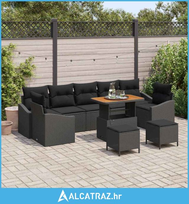 set od 10 komada vrtnih sofa s jastucima crni poli ratan akacija, dvos