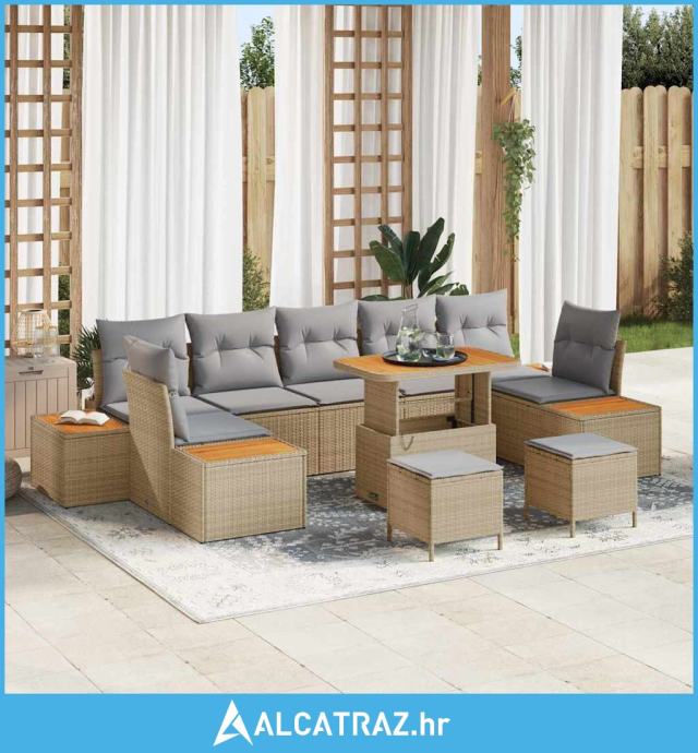 set od 10 komada vrtnih sofe s jastučićima bež poli ratan akacija, 3-d