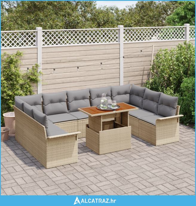 set od 10 komada za vrtno objedovanje s jastučićima bež poli ratana ak
