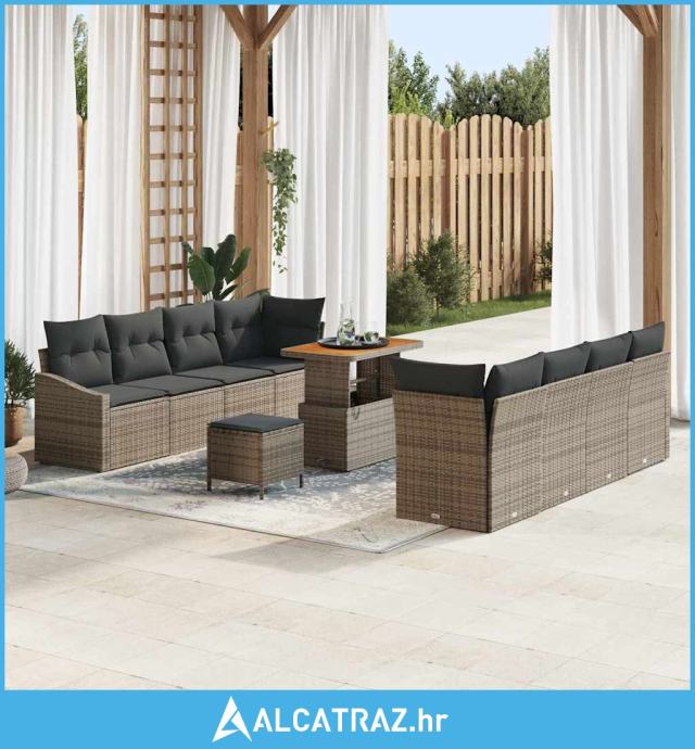 set od 11 delova vrtne garniture s jastučićima siva poli ratan akacija