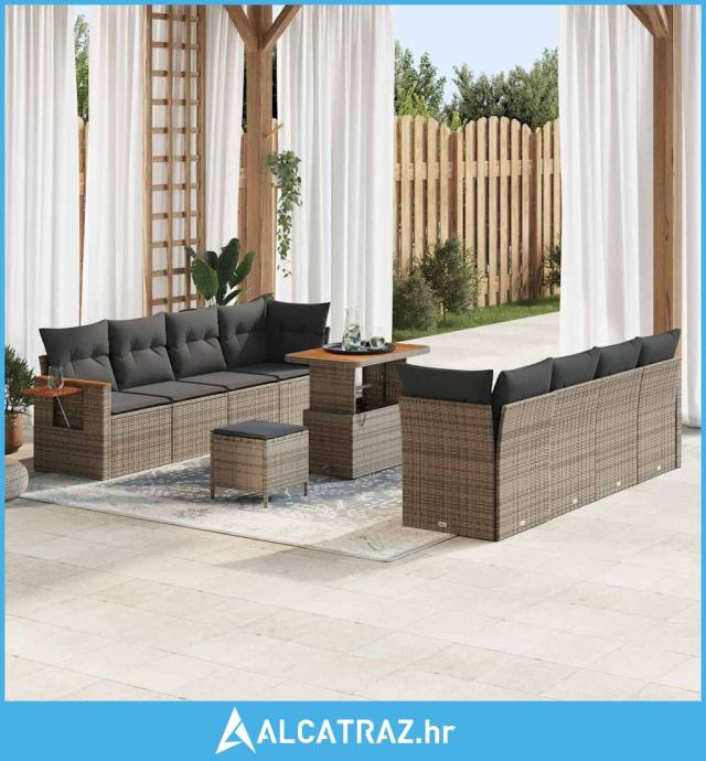 Set od 11 dijelova vrtnog kauča s jastučićima sivi poli ratan, Set od