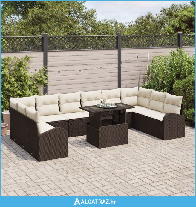 set od 11 komada sofa za vrt s jastučićima smeđi poli ratan - NOVO