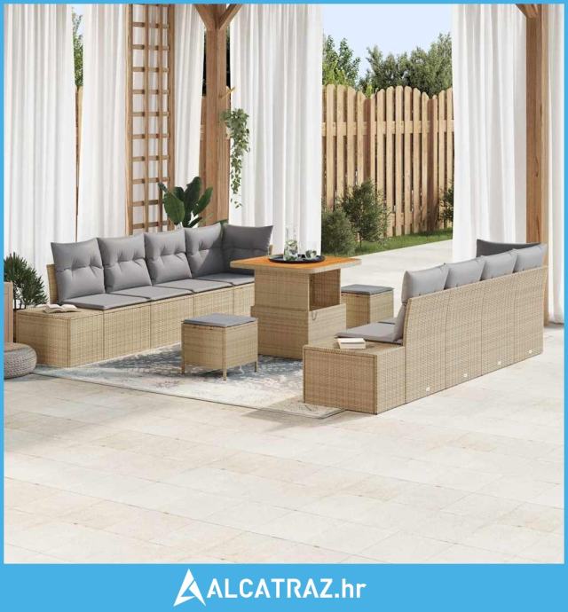 Set od 11 komada vrtni sofa s jastucima Bež poli ratan akacija, Dvosje