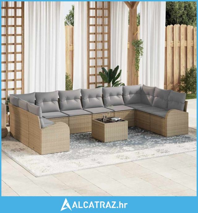 set od 11 komada vrtnog kauča s jastučićima crni poli ratan - NOVO