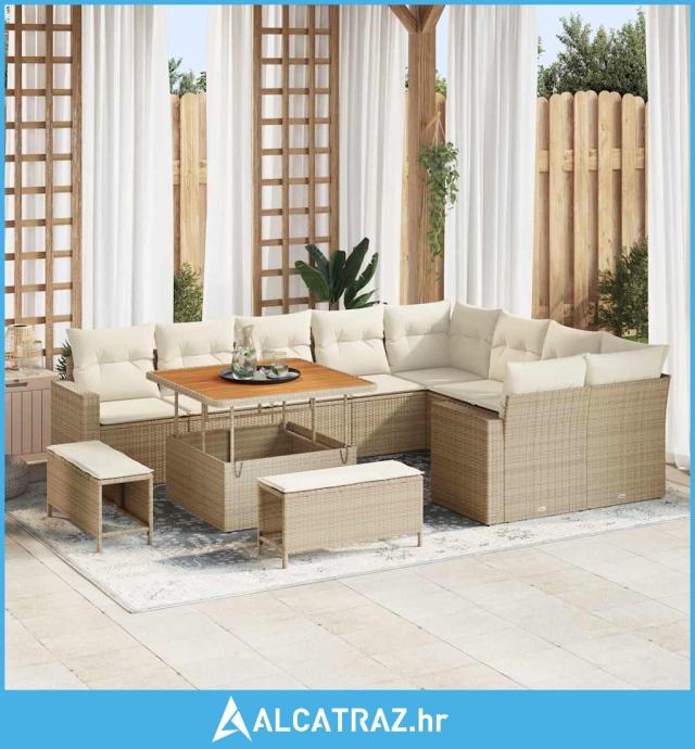 Set od 12 komada vrtne sofe s jastučićima, bež poli ratan, akacija - N