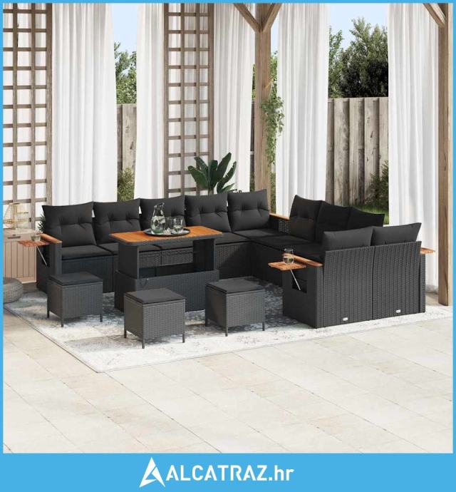 Set od 14 komada vrtnog kauča s jastučićima Crna Poli ratan Akacija, S