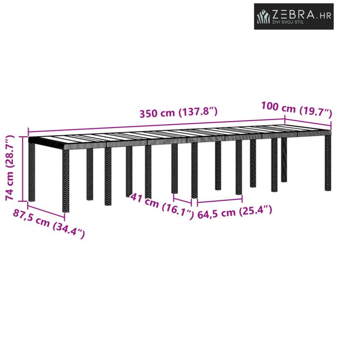 Sofisticirani dizajn: Ovaj vrtni blagovaonski set utjelovljuje elegantan i minimalistički stil, čineći ga idealnim dodatkom suvremenim vanjskim prostorima. Njegova moderna estetika definira se čistim linijama i pravokutnim oblikom, koji se savršeno uklapa u razne stilove dekoracije, poboljšavajući i funkciju i formu u vašem vrtu.