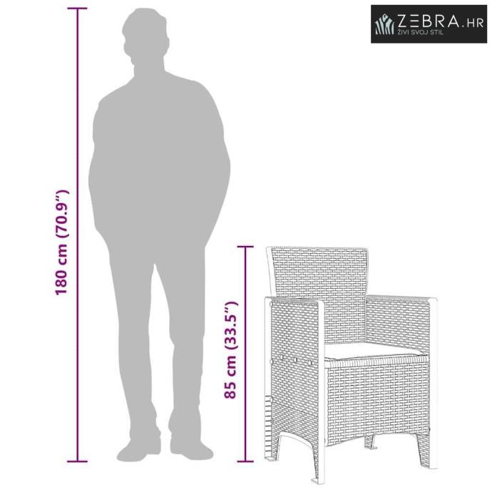 Materijal od polipropilena: Napravljena od čvrstog polipropilena, stolica je lagana, ali čvrsta. Ovaj materijal je otporan na UV zračenje i vodu, pa je stolica savršena za otvorene prostore. Glatka površina olakšava čišćenje i održava svjež izgled. Funkcionalne značajke: Dizajnirana za udobnost, stolica je super za dugo sjedenje. Laganija je za premještanje, što je čini fleksibilnom za sve tvoje potrebe na otvorenom. A čvrsta je koliko treba da pruži dobru potporu dok sjediš. Izgled ratana: S elegantnim izgledom od ratana, stolica unosi dašak stila koji se savršeno uklapa u svaku vanjsku scenu. Njen stil lako se uklapa u vrtove i terase, dajući klasu bez previše brige o održavanju, zahvaljujući pametnim materijalima. Spremna za van: Napravljena za korištenje na otvorenom, stolica se dobro drži u raznim vremenskim uvjetima. Njena otpornost na UV zračenje čini je dugotrajnom i lijepom čak i po suncu, a vodootpornost štiti je od kiše, što je čini praktičnom za razne klime. Minimalna briga: Nije potrebno baš puno održavanja - samo brzo brisanje vlažnom krpom pomaže da zadržiš dobar izgled. Ovo je super izbor za zauzete ljude koji žele udobnost bez previše truda oko čišćenja. Boja: Bijelo