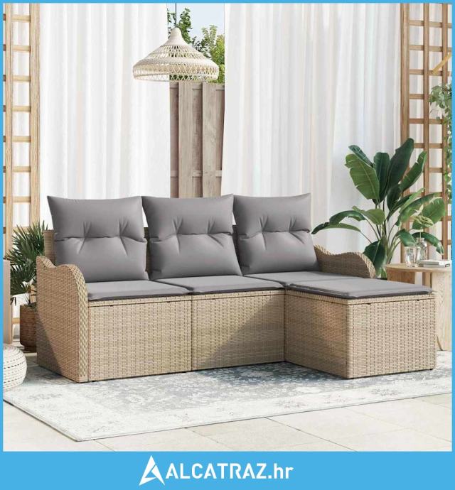 Set od 4 dijela vrtnih kauča s jastučićima bež poli ratan - NOVO