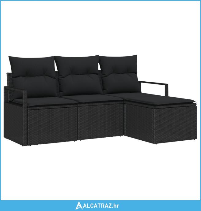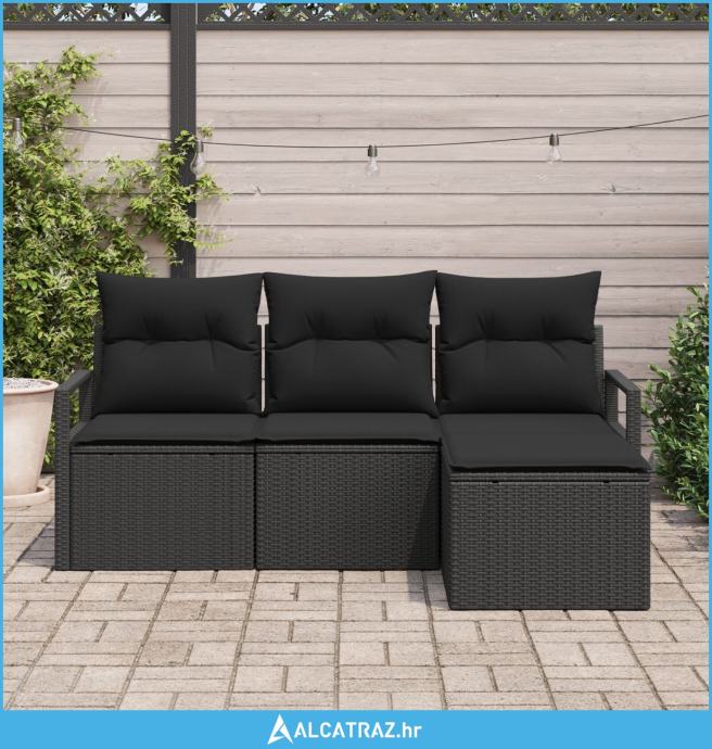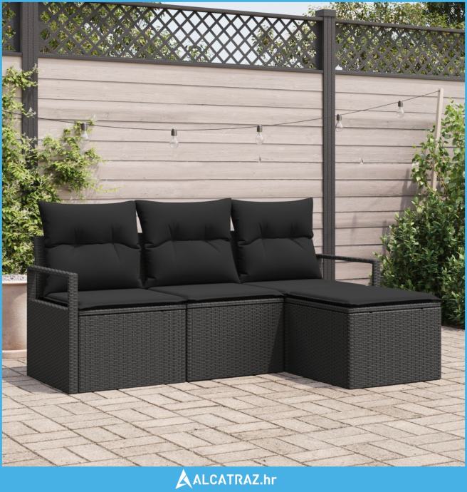 set od 4 dijela vrtnih kauča s jastucima crni poli ratan, kauč za vrt
