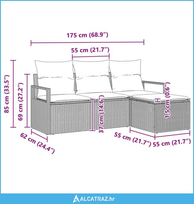 - UV otporan: Izrađen od materijala otpornih na UV zračenje, ovaj set kauča zadržat će svoj vibrantan izgled i izdržljivost.