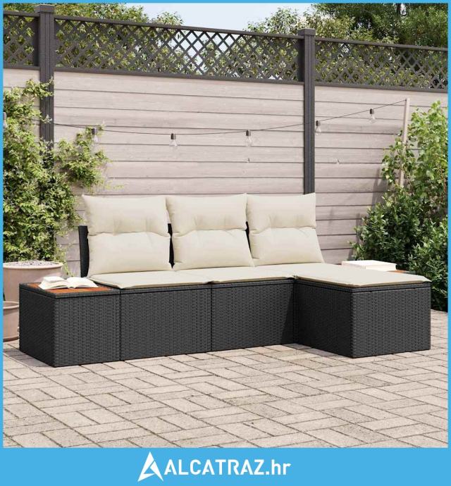 Set od 4 dijela vrtnog kauča s jastučićima crni poliratan akacija - NO