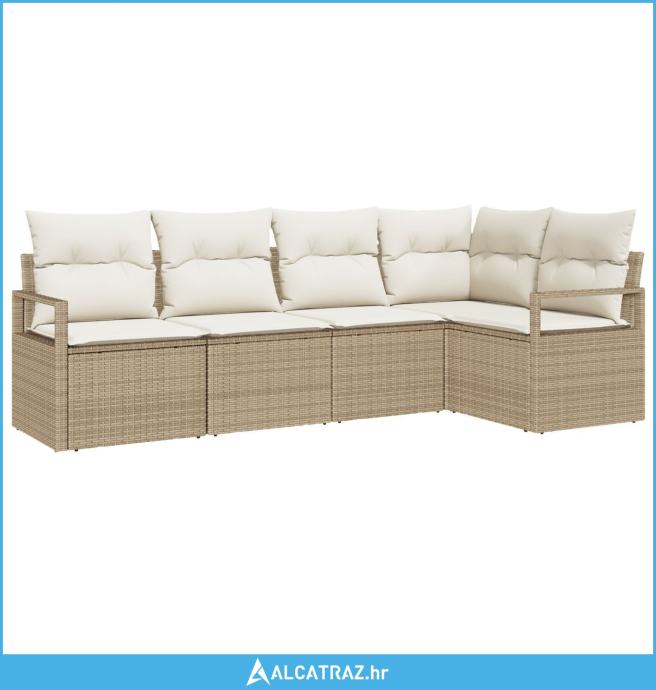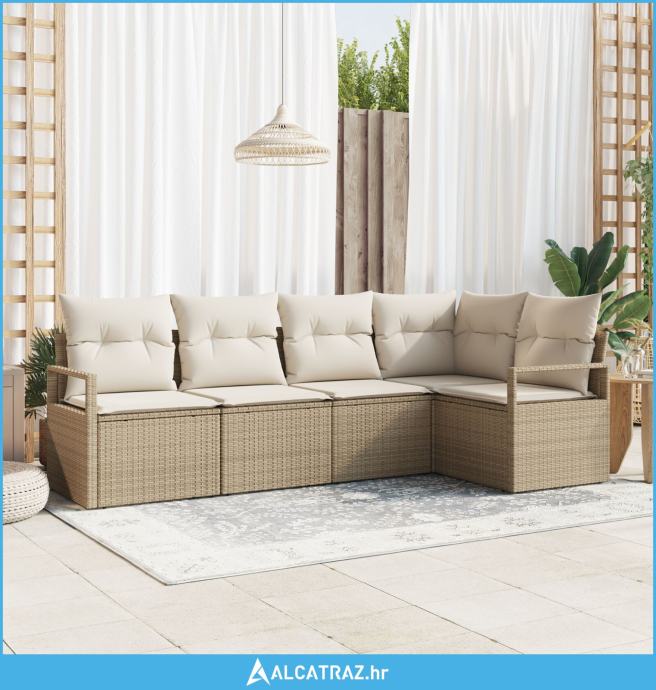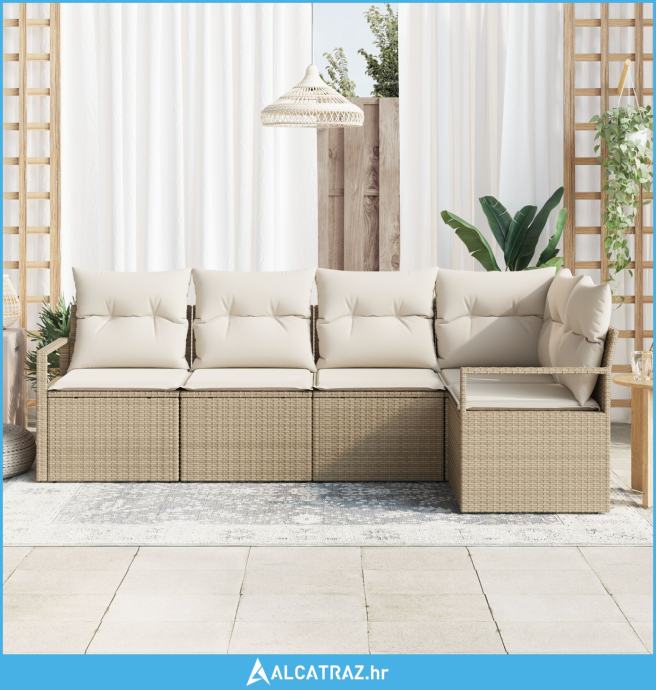 set od 5 dijelova kauča za vrt s jastučićima bež Poli ratan, 2-sjedaln