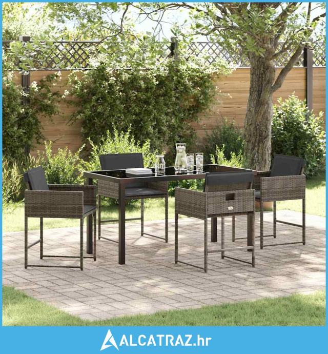 set od 5 dijelova za objedovanje u vrtu s jastučićima siva poli ratan