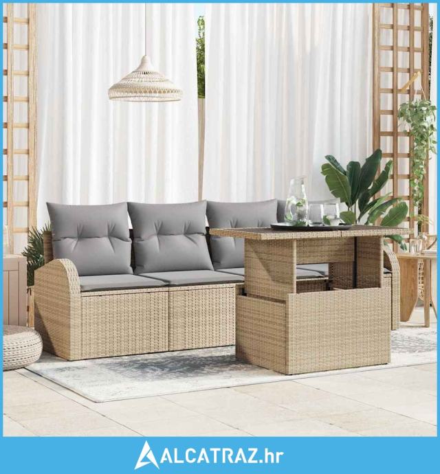 Set od 5 dijelova vrtne garniture s jastucima Bež Poli ratan - NOVO