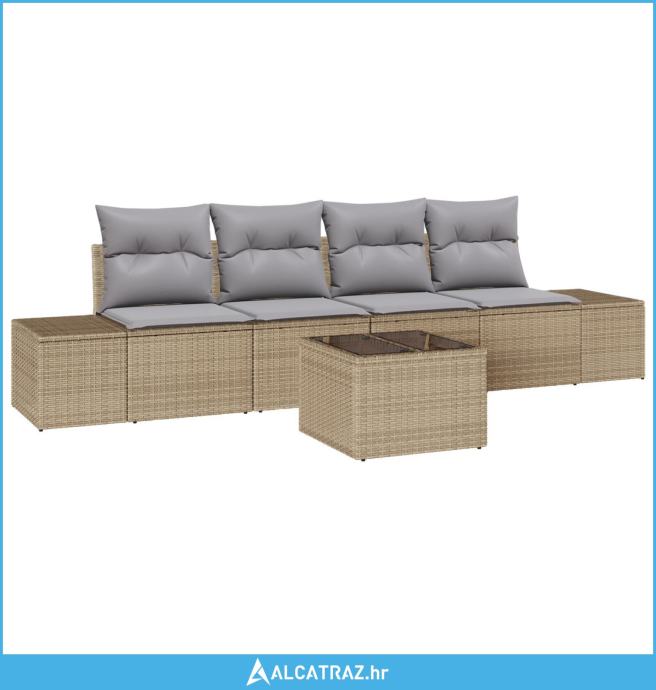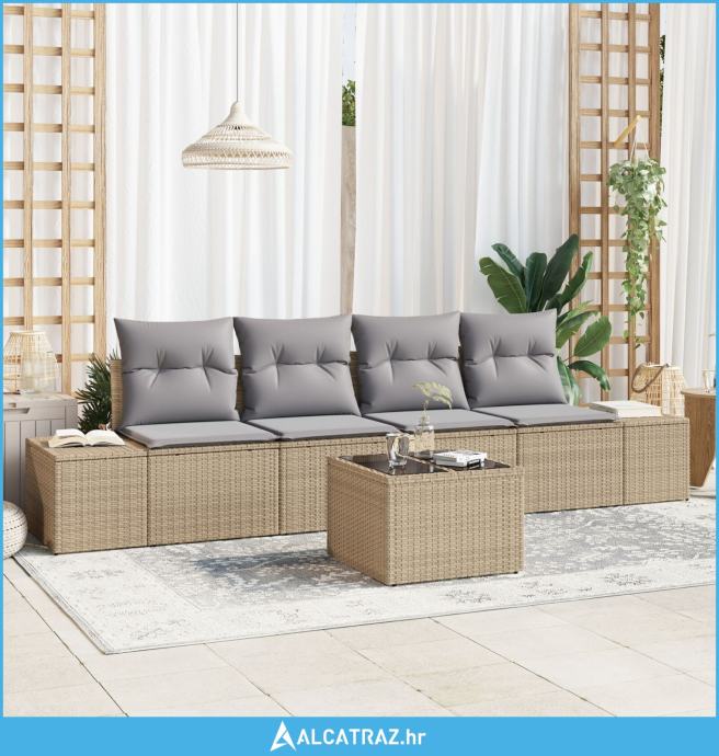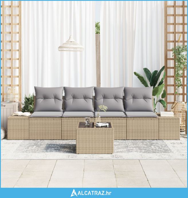 set od 5 dijelova vrtne sofe s jastučićima bež poli ratan - NOVO