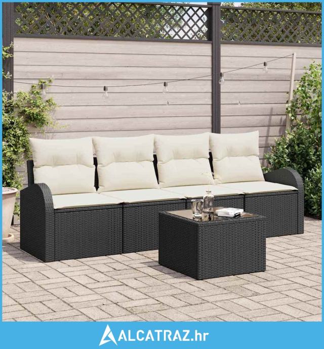 set od 5 dijelova vrtnih kauča s jastučićima crna poli ratan - NOVO