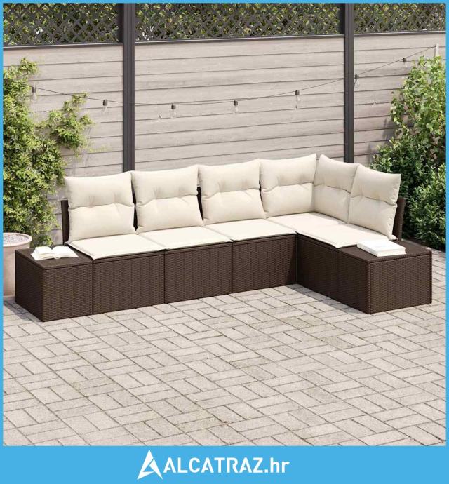 set od 5 dijelova vrtnih kauča s jastučićima smeđa poli ratan - NOVO