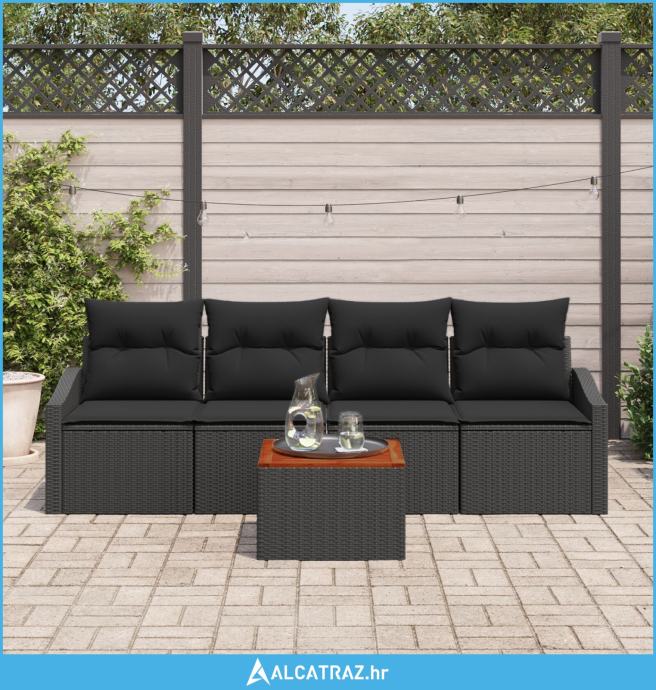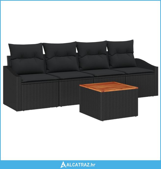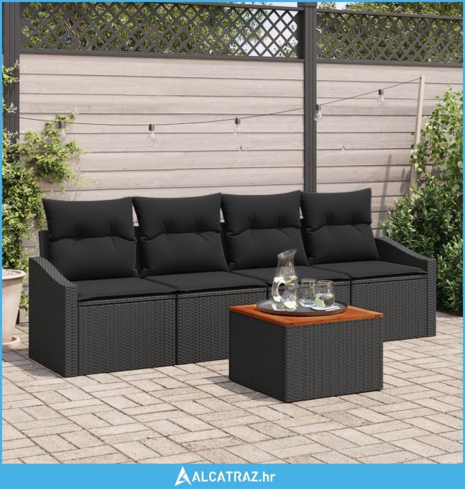 set od 5 dijelova vrtnih sofa s jastuком Crna Poli ratan Akacija - NOV