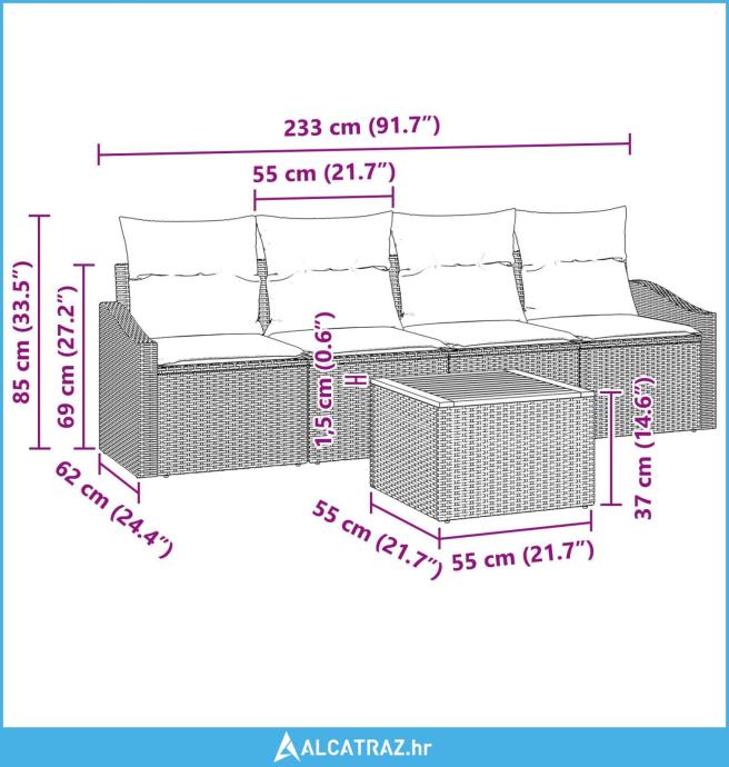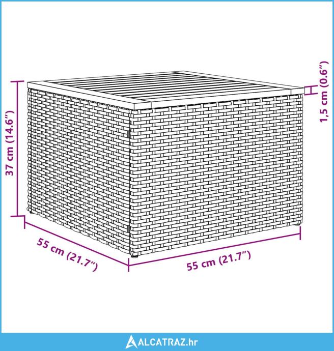 - Delivery Contains: 2 x središnje sjedalo s pohranom, 2 x arm sofa s pohranom, 1 x vrtni stol