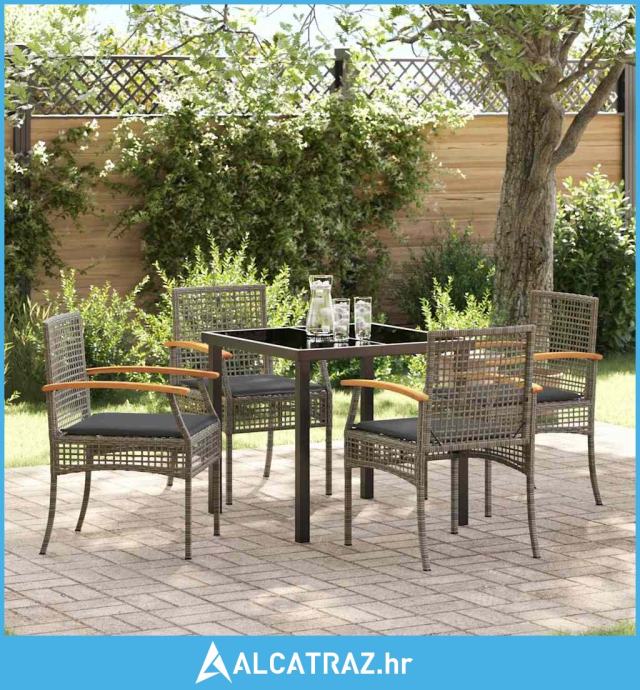 Set od 5 komada vrtne stolice s jastučićima sive poli ratana - NOVO