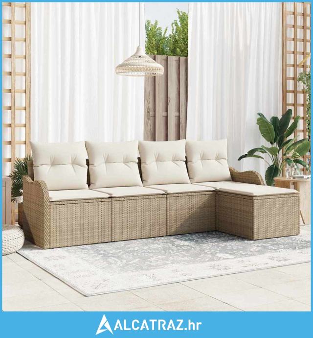 set od 5 komada vrtnog kauča s jastučićima Bež poli ratan, 2-sjedni vr
