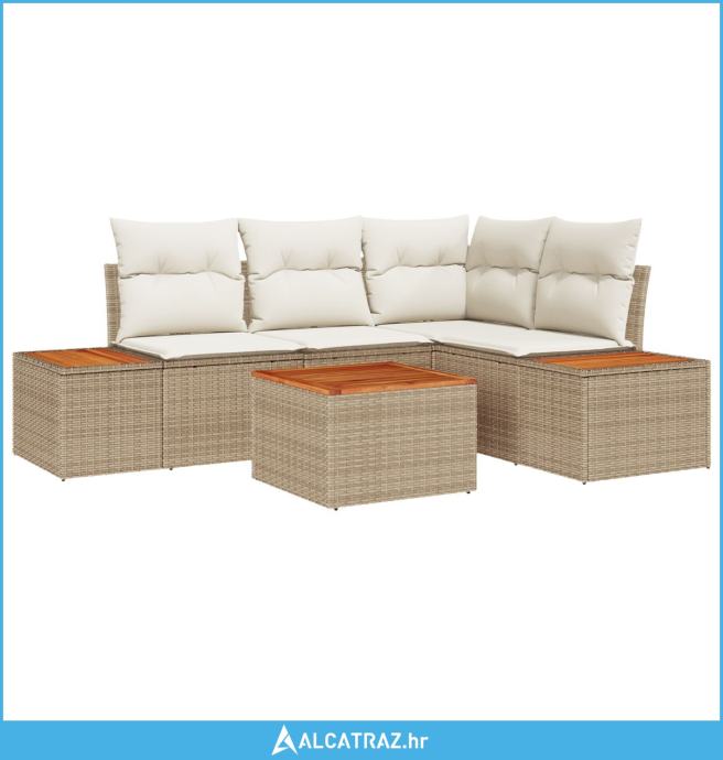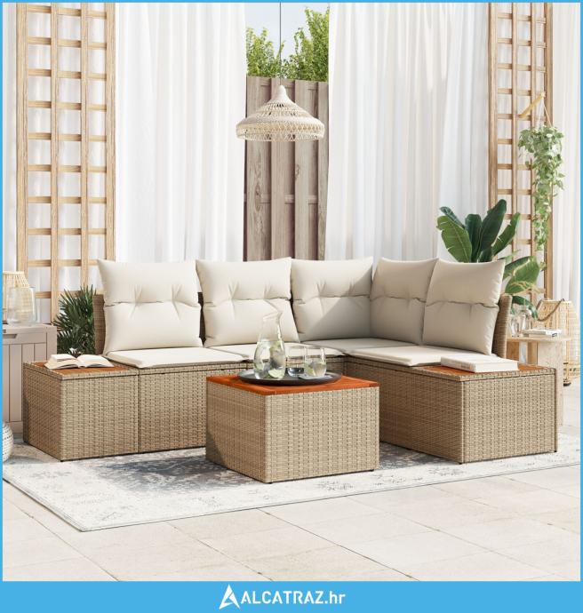 set od 5 komada vrtnog kauča s jastučićima Bež poliratan akacija - NOV