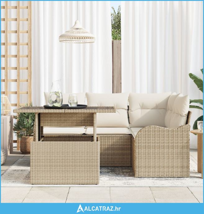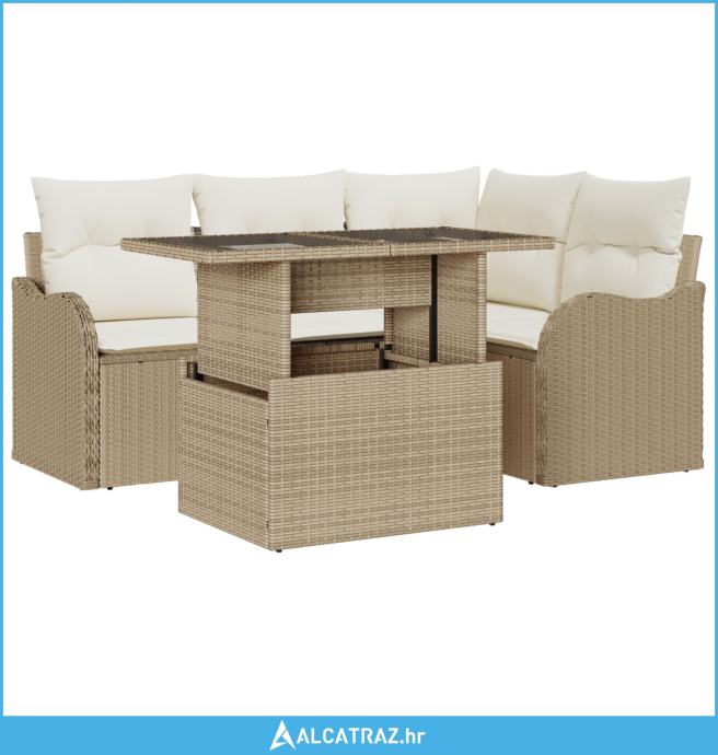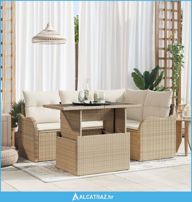 set od 5 komada vrtnog kauča s jastucima bež poliratan, dvosed vrtni k