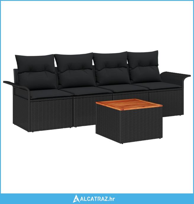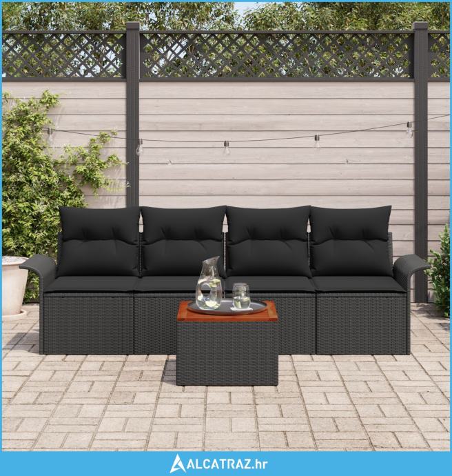 Set od 5 Vrtne Sofe s Jastučićima Crna Poli Ratan Akacija - NOVO