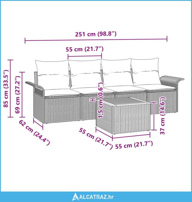 - Moderan Dizajn: Čiste linije i moderna vibra ovog seta sofe poboljšavaju izgled svakog vanjskog prostora, povećavajući funkcionalnost i privlačnost. Savršeno za okupljanje s prijateljima ili provođenje mirnih trenutaka na otvorenom.