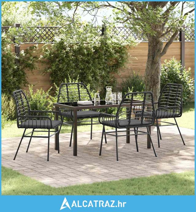 set od 5 vrtnih blagovaonskih stolica s jastučićima crni poli ratan -