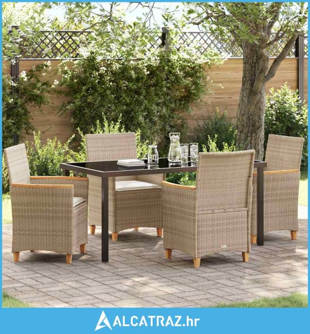 Set od 5 vrtnih stolica za objed s jastučićima bež poli ratan - NOVO