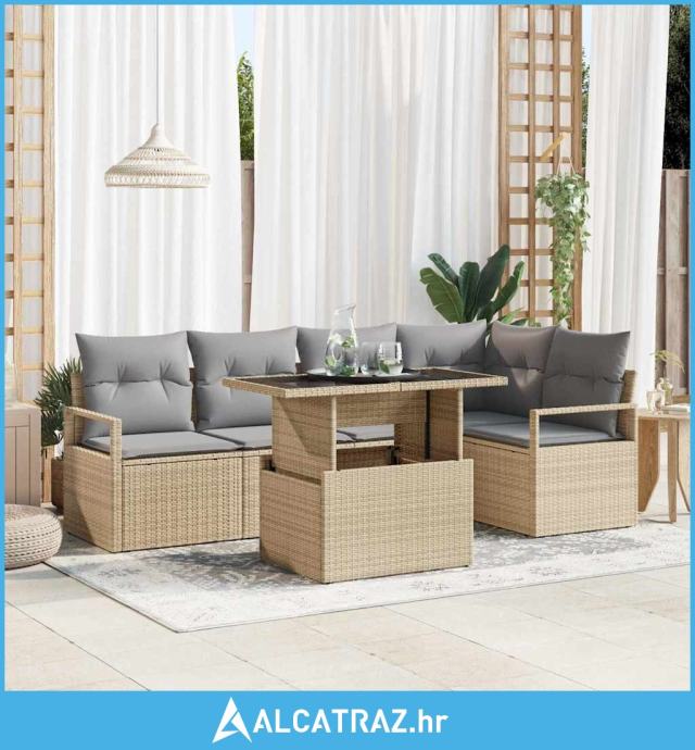 Set od 6 dijelova sofe za vrt s jastučićima bež poli ratan - NOVO