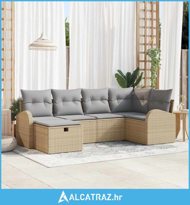 set od 6 dijelova vrtne garniture s jastučićima Bež Poli Ratan - NOVO